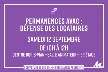Si vous êtes locataires, vous vous posez des questions, vous rencontrez des problèmes, etc.. n'hésitez pas à venir à cette permanence, vous serez les bienvenus.